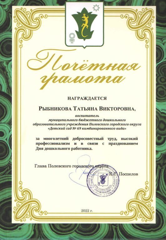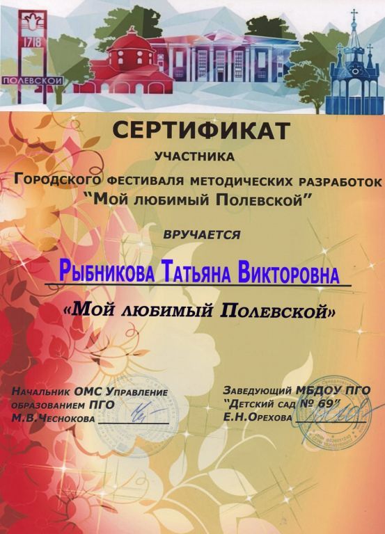 Муниципальное бюджетное дошкольное образовательное учреждение Полевского городского округа "Детский сад № 69 комбинированного вида"