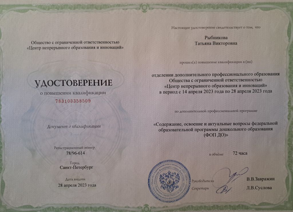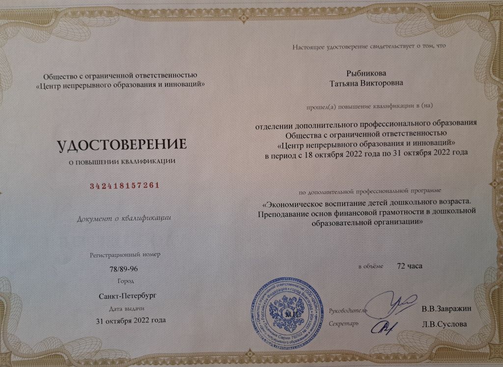 Курс повышения квалификации: "Экономическое воспитание детей дошкольного возраста. Преподавание основ финансовой грамотности в ДОО" в количестве 72 часов, 24.10.2022